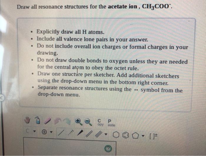 Solved Draw All Resonance Structures For The Acetate Ion Chegg Com